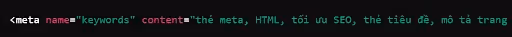 Thẻ Meta Keywords từng là một yếu tố quan trọng trong SEO, cho phép bạn liệt kê các từ khóa liên quan đến nội dung trang web. Tuy nhiên, hiện nay Google không còn coi trọng thẻ này vì tình trạng "nhồi nhét từ khóa" trong quá khứ.