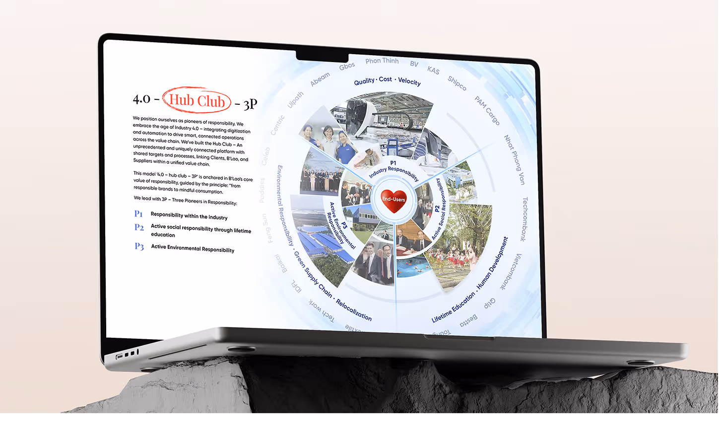Thách thức của dự án là truyền tải hình ảnh một tập đoàn đa lĩnh vực, mang tầm nhìn toàn cầu thông qua ngôn ngữ sketch tay nhưng vẫn đảm bảo sự chuyên nghiệp và mạch lạc trong trải nghiệm. Website được tái cấu trúc theo tư duy hệ thống, làm rõ các trụ cột hoạt động và duy trì thông điệp nhất quán “Responsible Heart”. Các chi tiết sketch được sử dụng có kiểm soát như điểm nhấn nhận diện, vừa tạo cảm giác gần gũi vừa giữ được tính chuyên nghiệp, phù hợp với đối tượng B2B.
