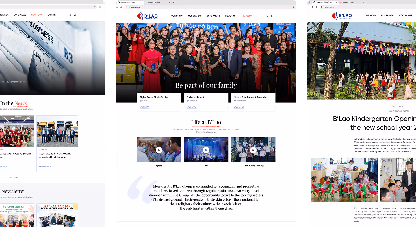 B'Lao Group là Tập đoàn đa quốc gia hoạt động trong lĩnh vực nông nghiệp, đầu tư và phát triển bền vững, với định hướng xây dựng hệ sinh thái giá trị dài hạn thay vì các mô hình tăng trưởng ngắn hạn. Website được phát triển nhằm giới thiệu tổng quan về năng lực, lĩnh vực hoạt động và tầm nhìn của BLAO GROUP, đồng thời đóng vai trò như một kênh thông tin chính thức giúp kết nối với đối tác và nhà đầu tư.