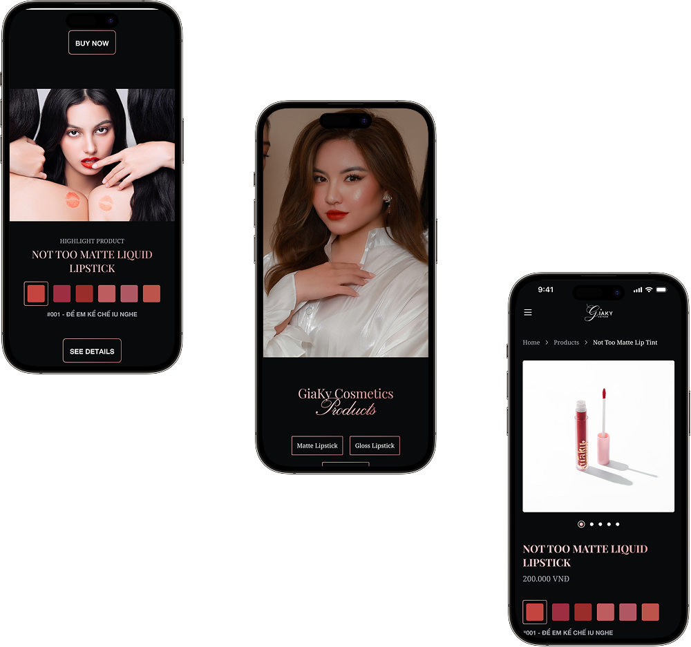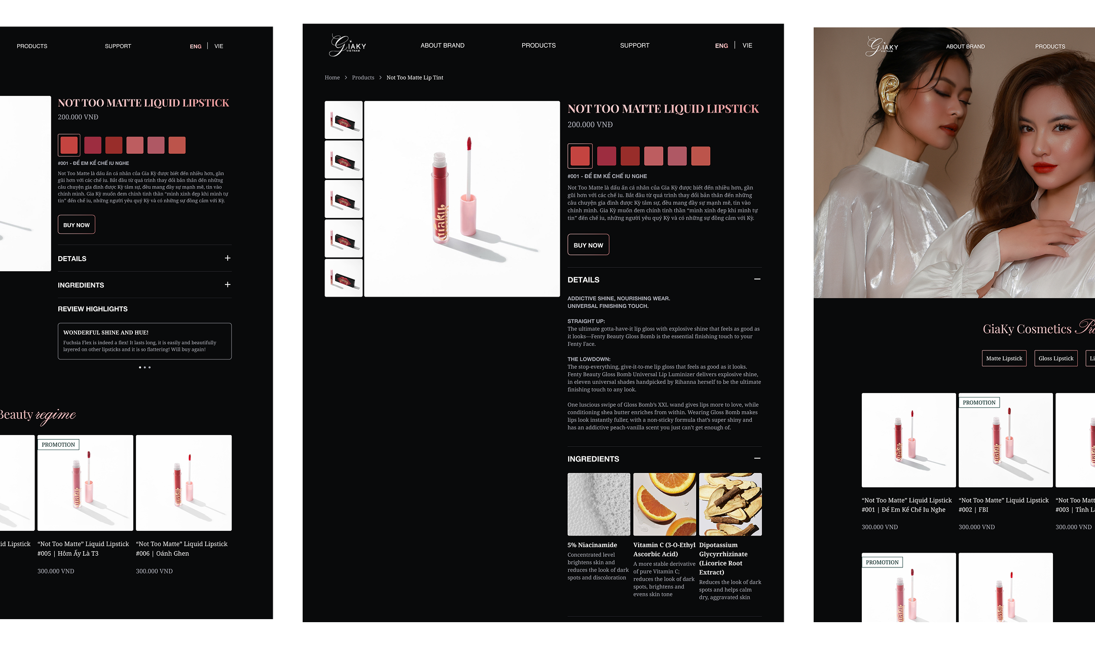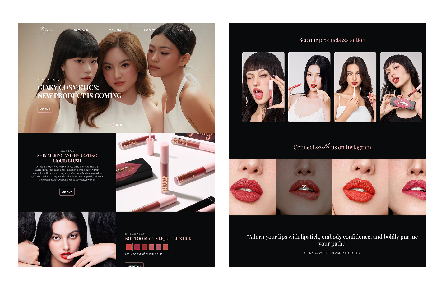 Gia Kỳ Cosmetics với sứ mệnh mong muốn đem đến những sản phẩm “rất Việt Nam”, được nghiên cứu cho cơ địa người Việt, đã cho ra mắt những sản phẩm son và má hồng mang đậm cá tính của người Việt, hướng đến nhóm khách hàng trẻ yêu thích sự nổi bật và thể hiện cá tính riêng. Website được phát triển nhằm giới thiệu sản phẩm, tối ưu trải nghiệm mua sắm và đồng thời thể hiện rõ tinh thần thương hiệu trên nền tảng digital.