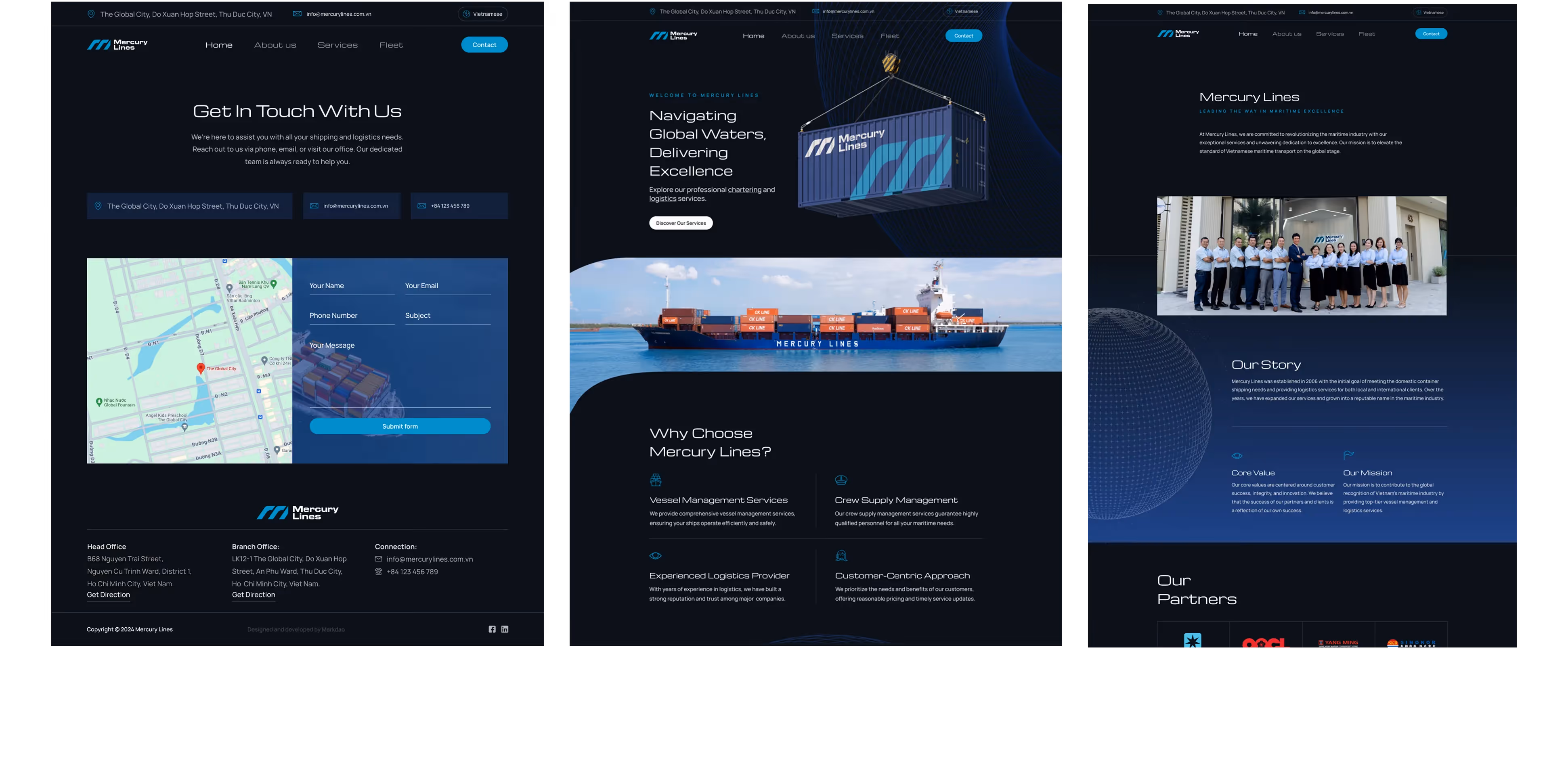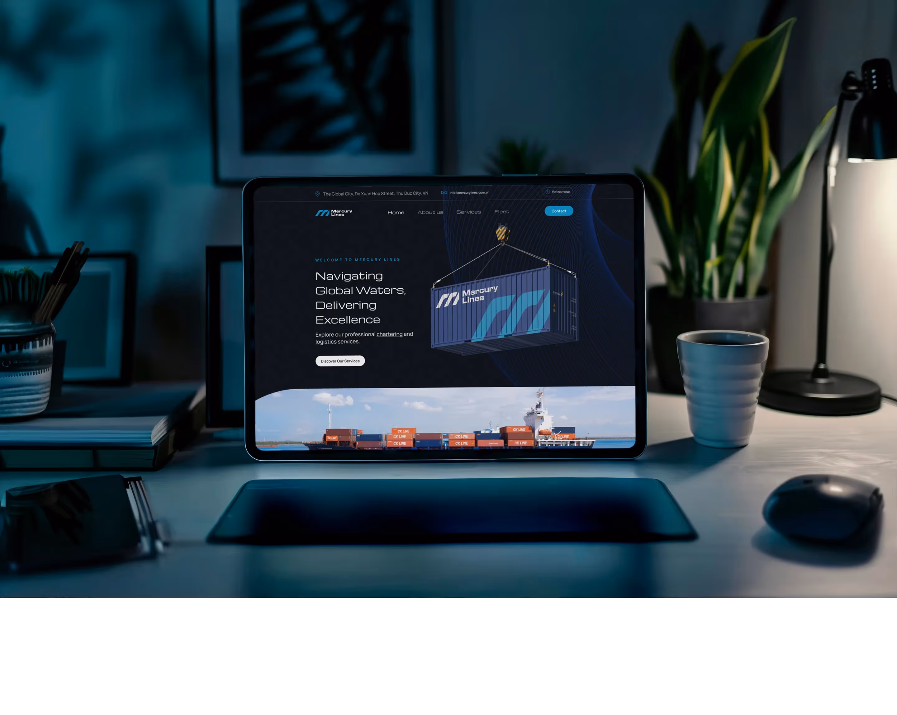 Mercury Lines tiên phong trong ngành hàng hải Việt Nam với dịch vụ cho thuê tàu và logistics toàn diện. Mang trong mình hoài bão nâng tầm vị thế của vận tải biển Việt Nam trên trường quốc tế, doanh nghiệp luôn tìm cách tiếp cận khách hàng bằng tất cả sự chính trực và tinh thần không ngừng đổi mới. Một trong số đó chính là website Mercury Lines được thiết kế theo phong cách hiện đại, chuyên nghiệp nhưng vẫn mang dấu ấn đặc trưng của thương hiệu.